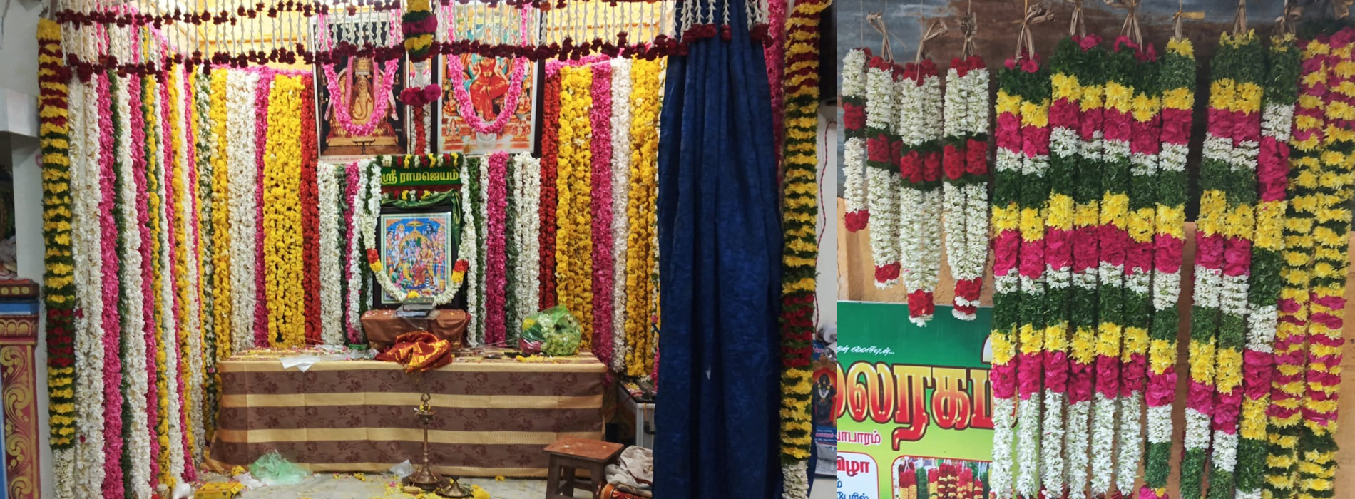 மகா மலரகம் நச்சாந்துபட்டி மற்றும் சுற்றுவட்டார பகுதியில் சிறந்த முறையில் கல்யாண மாலைகள், காது குத்தும் மாலைகள், வீட்டில் ஐயப்பன் சிலை வைத்து அலங்காரம், பஜனை செட், இருமுடி செட்.